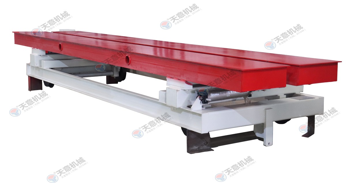 切割小車(chē)用于承載坯體為切割提供動(dòng)力;切割工段空翻脫模機(jī)將??蚍D(zhuǎn)90°,放在第一輛切割小車(chē)支座上進(jìn)行脫模,脫模后的??蚺c清理后的側(cè)模板進(jìn)行合模,合膜后的空??虮坏踹\(yùn)至模具回程軌道上進(jìn)行涂油處理,等待下一...