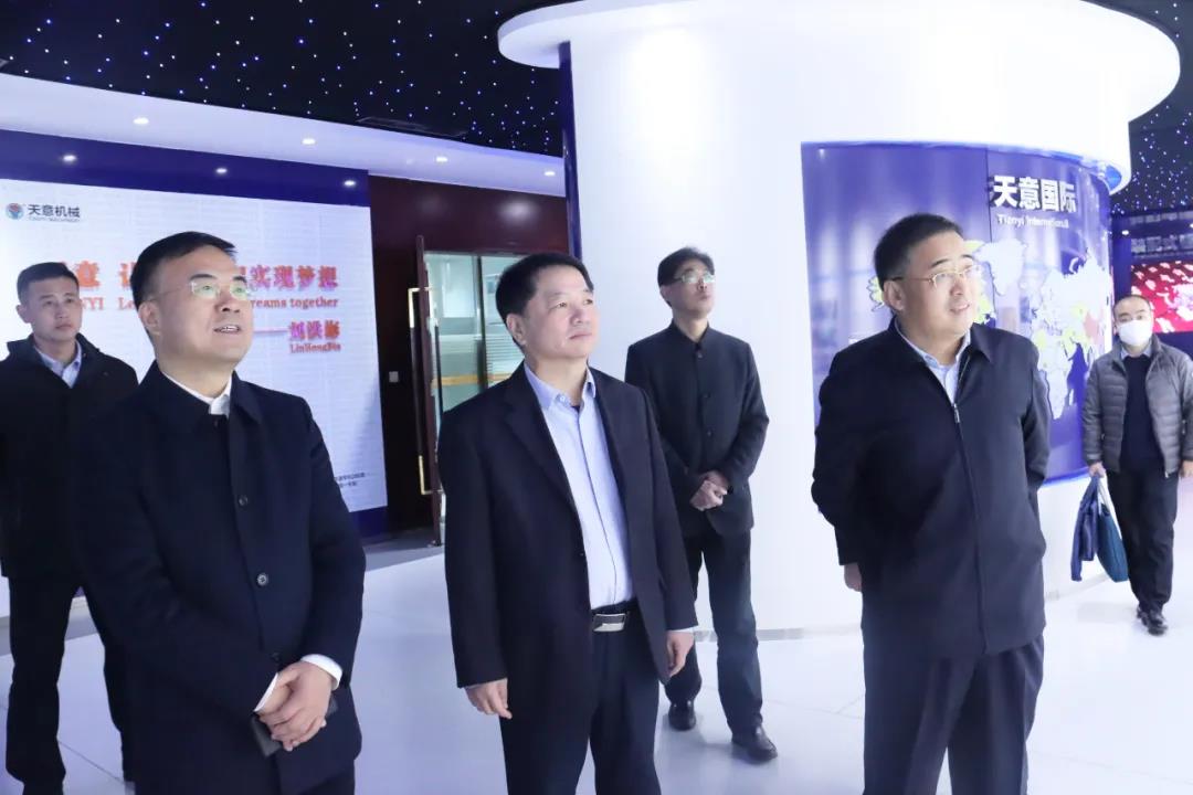 蔣萬云一行先后對天意機(jī)械高層次人才工作站、科技體驗館、紅領(lǐng)天意黨建展館、數(shù)字化車間等處進(jìn)行走訪。他們邊走邊問詢,邊看邊交流,深入了解了檢察機(jī)關(guān)在服務(wù)和保障民營企業(yè)健康發(fā)展方面發(fā)揮出的重要作用。