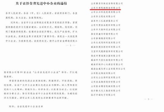 中國中小企業(yè)山東網(wǎng)公布了《關于表彰全省中小企業(yè)的通報》,山東天意機械股份有限公司被評為全省先進中小企業(yè)!