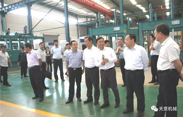 2019年9月23日,濟寧市人大常委副主任陳國華蒞臨天意機械考察指導,區(qū)委書記王宏偉,區(qū)人大常委會主任于立武,區(qū)人大常委會副主任趙廣嶺陪同調(diào)研,天意機械董事長劉洪彬陪同各級領導調(diào)研考察。
