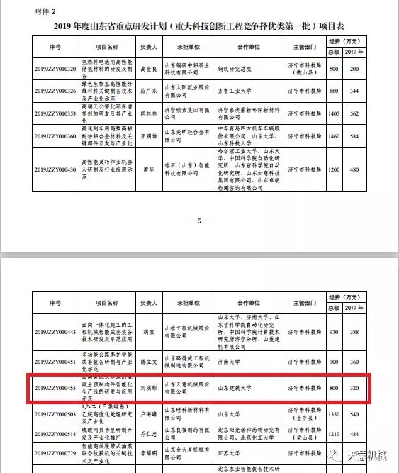 天意機械面向裝配式建筑的混凝土預(yù)制構(gòu)件智能化生產(chǎn)線的研發(fā)與應(yīng)用項目列入2019年山東省重點研發(fā)計劃,總計資金支持800萬元。